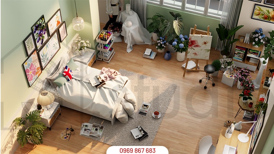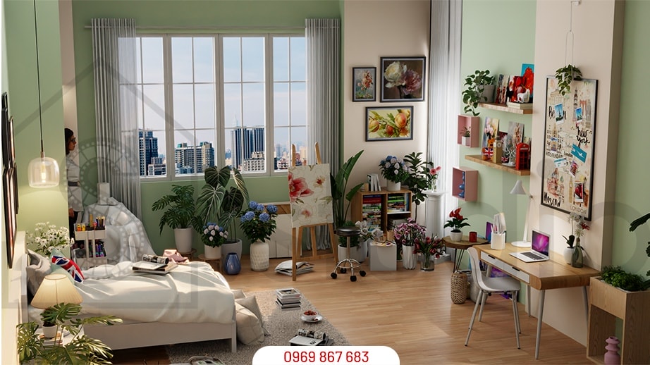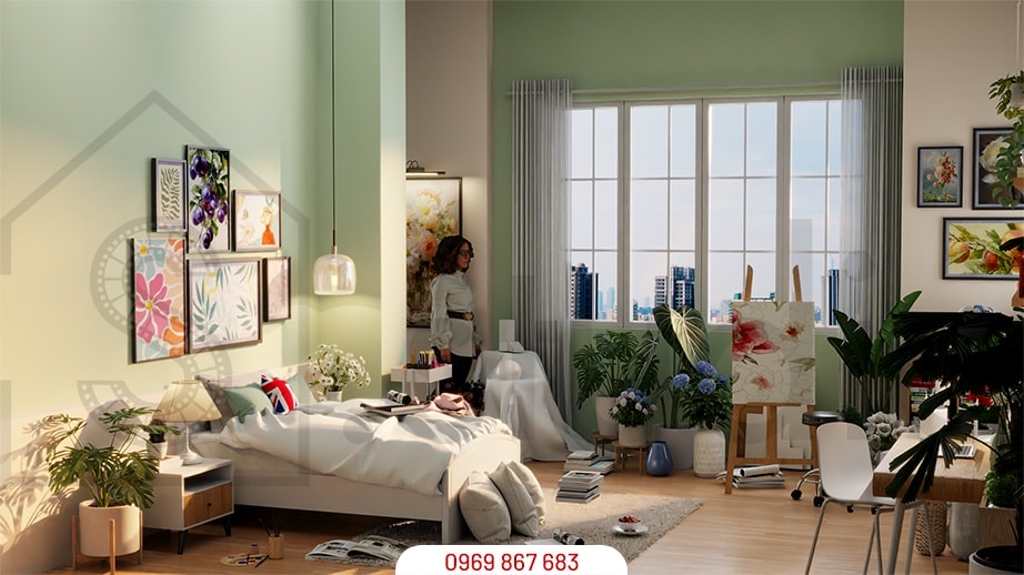 Phòng ngủ xanh lá mint be [31]